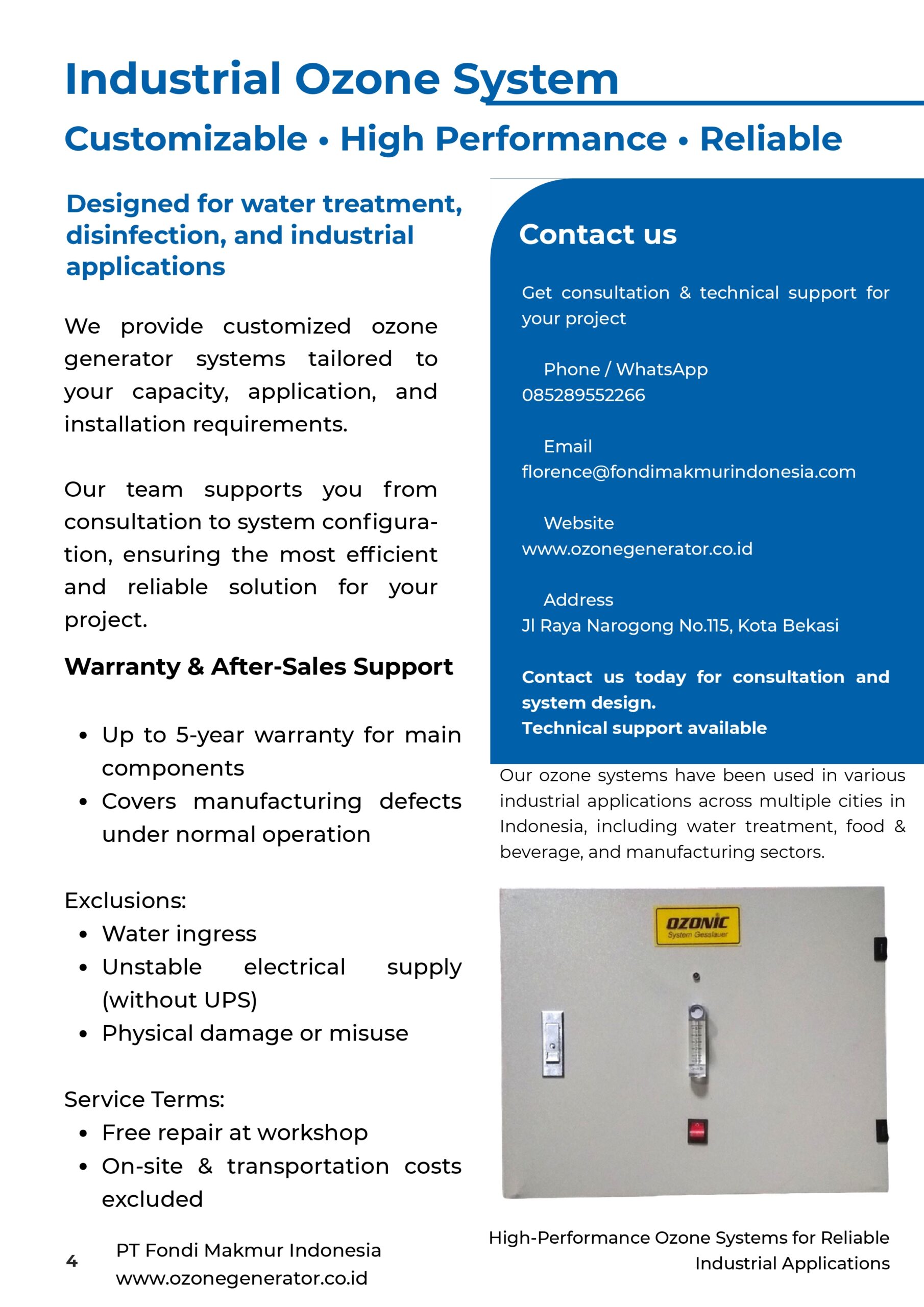 Ozonic dirakit di Indonesia dengan teknologi Jerman. Kualitas teruji sejak 1996 dan telah digunakan oleh berbagai perusahaan besar (salah satunya Aqua).